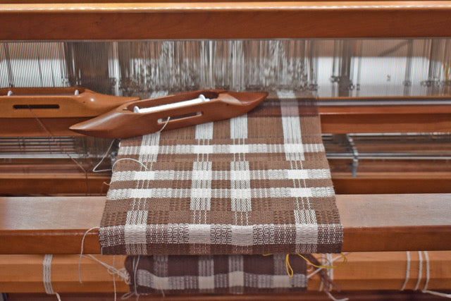 These towels are handwoven in a range of neutral shades such as tan, gray, brown, and white hues.