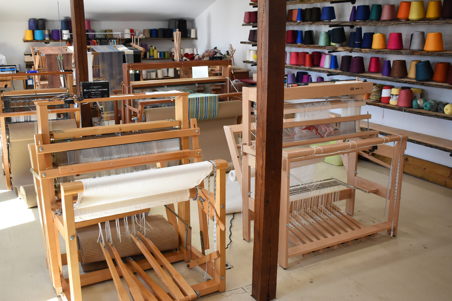 On my organic farm in Pennsylvania. My textile designs are inspired by nature and are handcrafted by loom.